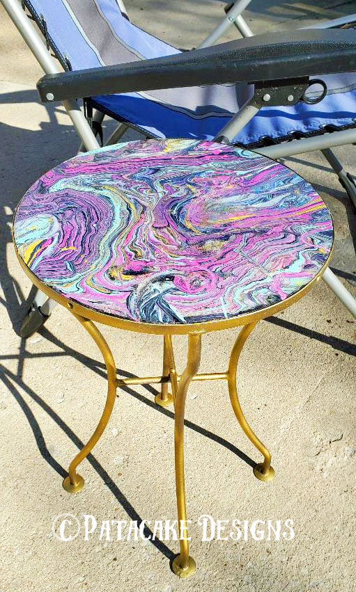 I am starting on my 2nd table top tomorrow. I know the pattern won't be the same, not with a fluid paint pour, but I'll use the same colors, so it will all work out.